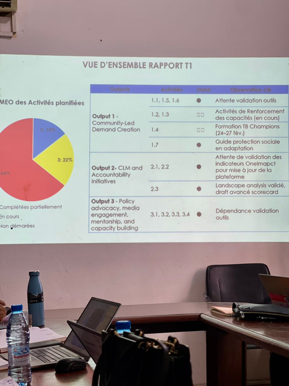 La rรฉunion avait pour objectif principal d’รฉvaluer l’รฉtat de prรฉparation du dรฉploiement du projet R.E.S.P.E.C.T, d’identifier les dรฉfis opรฉrationnels et de proposer des solutions concertรฉes pour amรฉliorer la dรฉtection, la prise en charge et le suivi des patients atteints de tuberculose. Les discussions ont portรฉ sur :